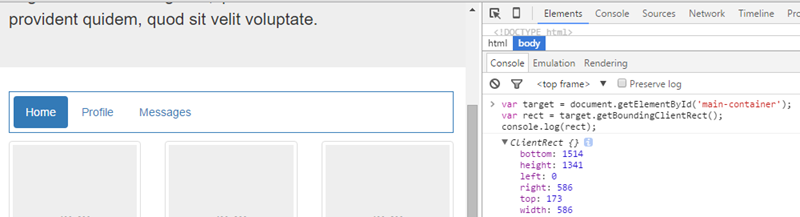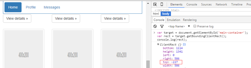 top跟bottom恰恰就是我们要获取的【target元素的顶部离浏览器顶部的距离】,【target元素的底部离浏览器顶部的距离】,而且当框的顶部或底部未超出浏览器顶部的时候,top跟bottom都是大于0的值,而当框的顶部或底部超出浏览器顶部的时候,top跟bottom是小于0的值: