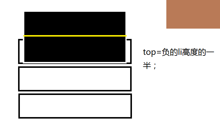 如图所示,空心格子就好比是每个li,给它设定相对定位属性,设置overflow:hidden;黑块为li子元素,高度为li的2倍,设置absolute属性,我们正是要改变它的top值从而获得变化!(右上角多余块与本图无关)