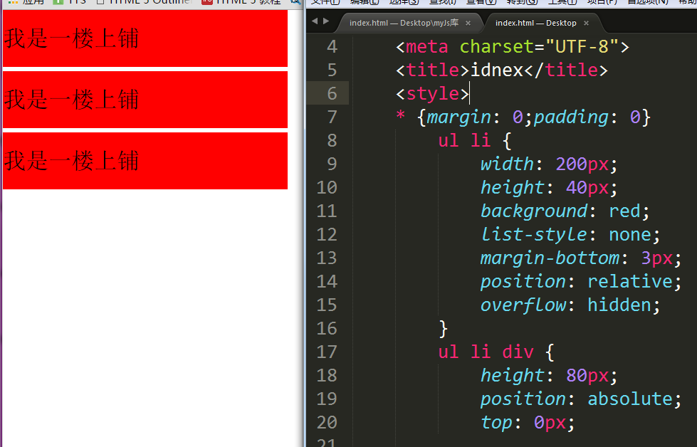 注意top值得变化!默认top=0时候,显示的“一楼上铺”,当top=-40px时候,li的子元素 上移40px,这时候显示的内容就为“一楼下铺”注意p元素的包裹层div