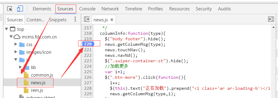 断点调试其实并不是多么复杂的一件事,简单的理解无外呼就是打开浏览器,打开sources找到js文件,在行号上点一下罢了。操作起来似乎很简单,其实很多人纠结的是,是在哪里打断点?(我们先看一个断点截图,以chrome浏览器的断点为例)