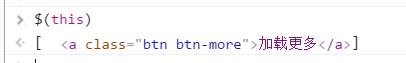 在控制台中输入$(this),即可得到选择的元素,没错,正是我们所点击的对象——加载更多按钮元素。