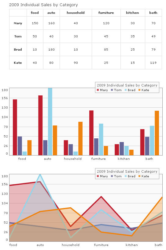 如果你想把一张表里的内容以图形化展示出来的话,那么这个插件将是最好的展示工具。他提供了不同类型的图标比如柱状图,饼图,面积图,折线图