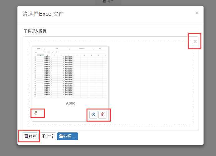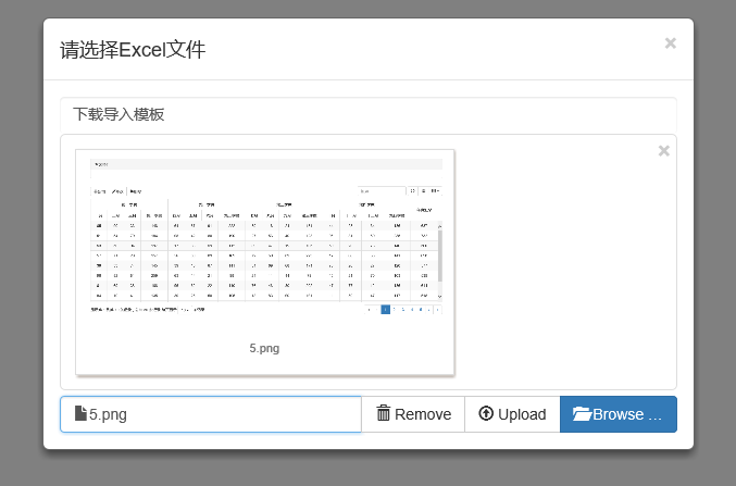 <form> <div class="modal fade" id="myModal" tabindex="-1" role="dialog" aria-labelledby="myModalLabel"> <div class="modal-dialog modal-lg" role="document"> <div class="modal-content"> <div class="modal-header"> <button type="button" class="close" data-dismiss="modal" aria-label="Close"><span aria-hidden="true">×</span></button> <h4 class="modal-title" id="myModalLabel">请选择Excel文件</h4> </div> <div class="modal-body"> <a href="~/Data/ExcelTemplate/Order.xlsx" class="form-control" style="border:none;">下载导入模板</a> <input type="file" name="txt_file" id="txt_file" multiple class="file-loading" /> </div></div> </div> </div> </form>