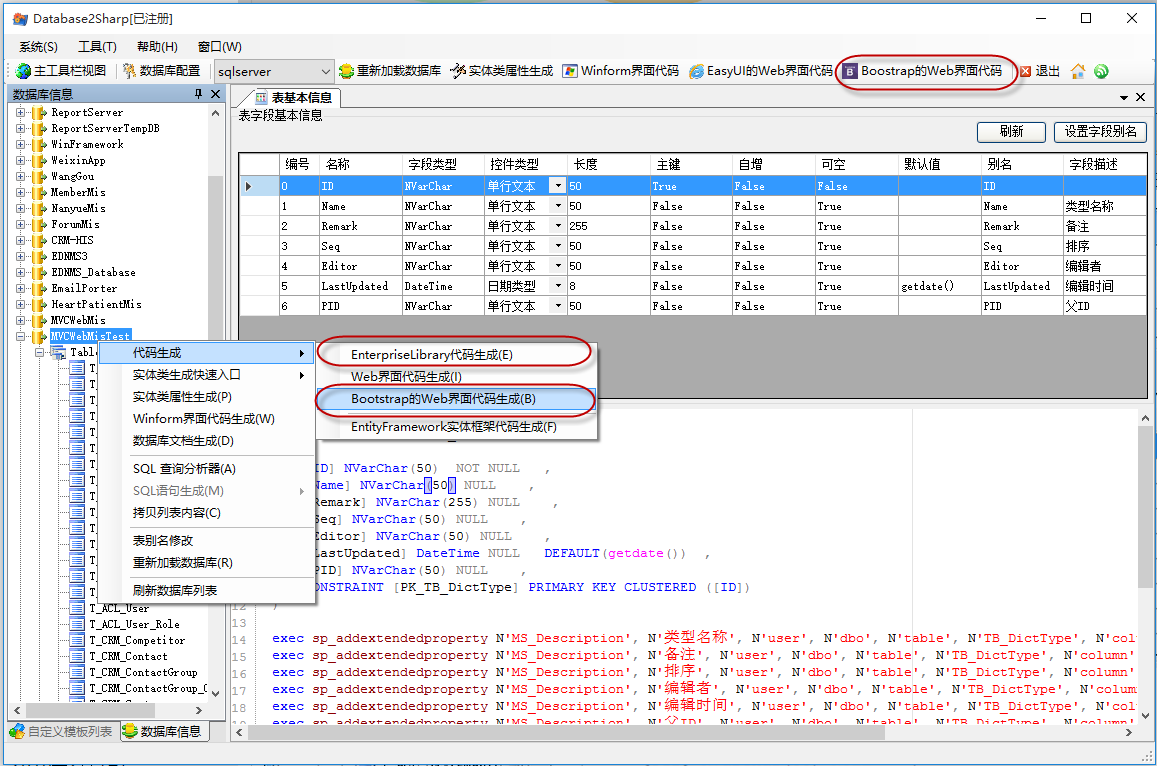 代码快速生成:良好的架构使得无论在业务逻辑层、控制器层、Web界面的UI层,均能提供统一的代码逻辑,这些代码均能通过代码生成工具Database2Sharp进行生成。Web界面代码可以充分利用代码生成工具Database2Sharp的元数据信息,实现Web界面的快速生成。有效减少出错的几率,提高Web界面编码的开发效率和乐趣,更可以使得企业内部的编码模式进行高效的统一。