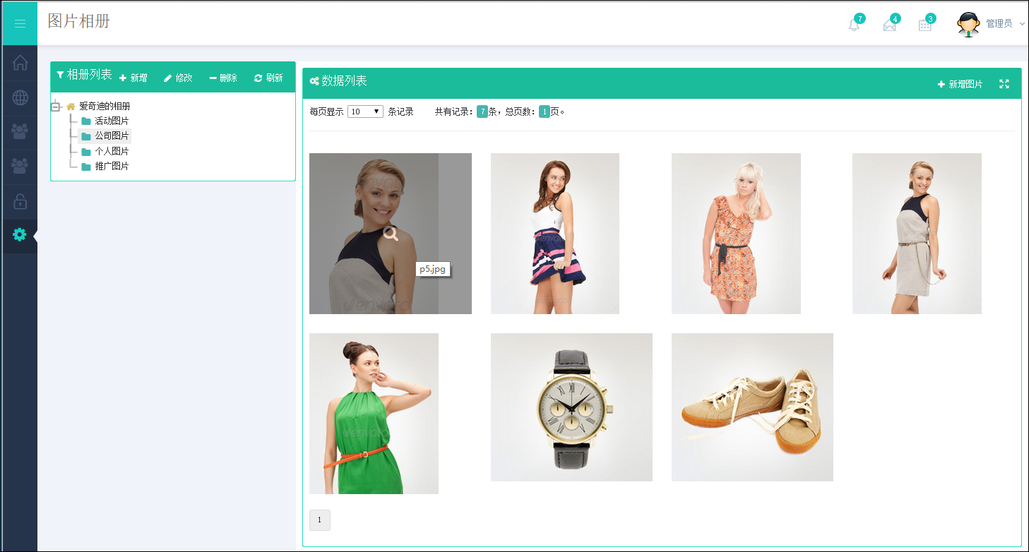 菜单的处理和展示:一般为了管理方便,菜单分为三级,选中的菜单和别的菜单样式有所区分,菜单可以折叠最小化,效果如下所示。