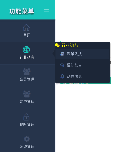我们从下图可以看到,为了菜单的美观,每个菜单项(这里分了三级菜单)都有一个图标,虽然大小不同,我们利用Bootstrap的图标,都是从Bootstrap图标库里面的内容。