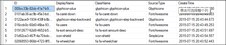 我们通过上面的介绍,估计对这几种Bootstrap的图标有了一定的了解,但是我们如果要能够在菜单编辑里面选择图标,那么我们还是需要把这些信息提取到数据库里面,然后展示出来给我进行选择的,否则无法做到动态配置。