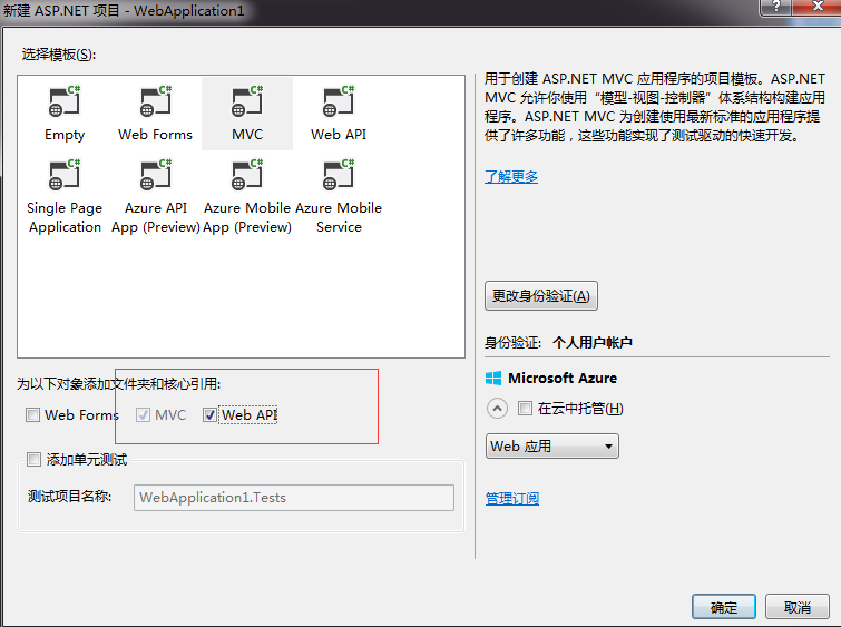 1.使用VS2013创建Asp.net Web应用程序工程,勾选MVC和WebAPI类库。具体见下图: