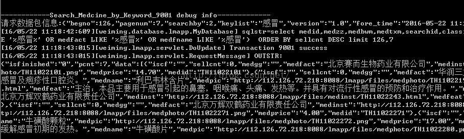 项目中始终存在一个问题:当在搜索栏输入关键词后(见图1),按照既定的业务逻辑应该是服务端接收到请求后,首先返回查询的前7条数据,待客户端出现上拉加载时,继续查找另外7条数据。但实际情形是不确定的,在服务端控制台(见图2)可看到begno一直到了126,也就是相当于客户端往服务端请求了127次,这是一个令人无法忍受的结果。