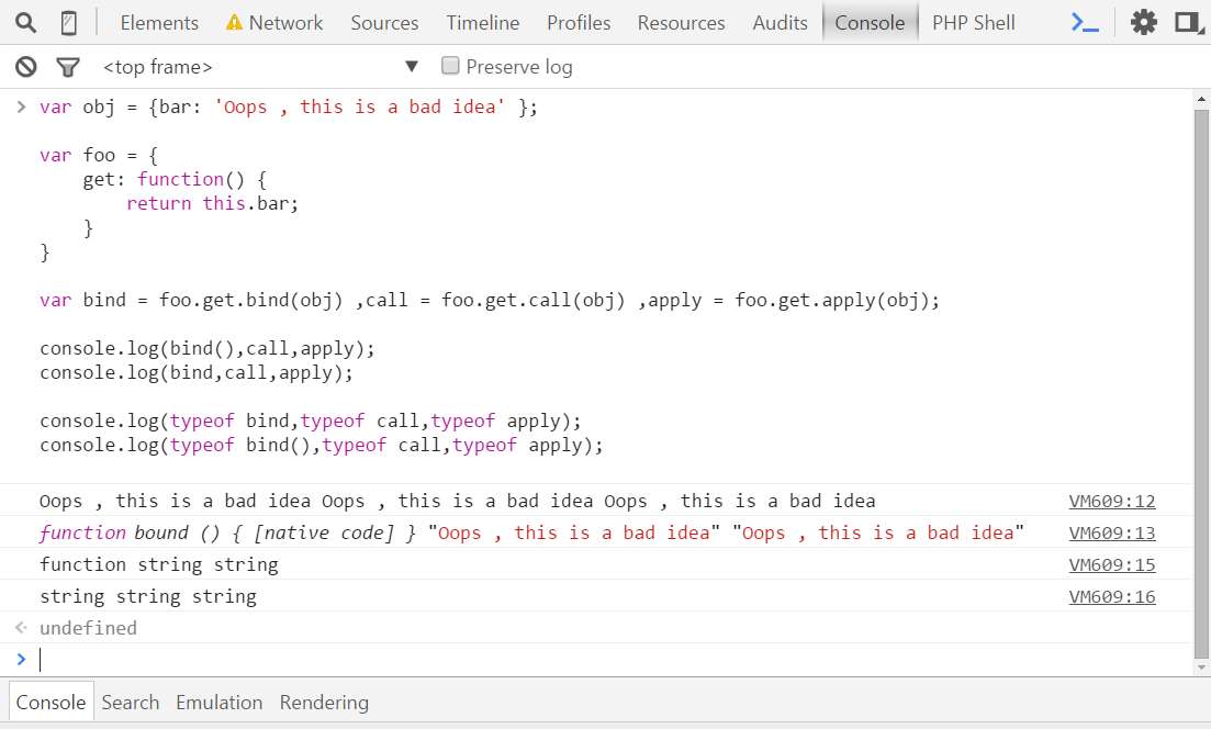需要说明的是,上面所有示例代码中的thisArg参数均用null来代替了,在未给出指定thisArg对象的情况下,null与undefined下this指向是全局对象,即js代码执行环境