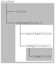 以上代码供涉及3个执行环境:全局环境、changeColor()的句柄环境和swapColors()的局部环境。