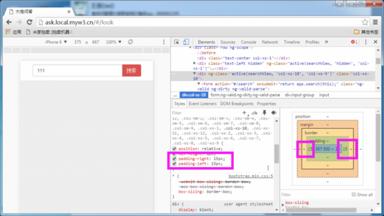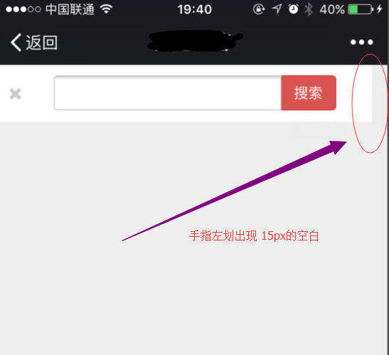 最近的一个项目 前台使用了 bootstrap.css + angularjs, 后台只处理数据(用的php,处理结果直接 json_encode($arr),非常爽)。一直在Chrome的仿真机测试非常完美, 没有进行真机测试。完成后,到手机测试时傻了,左右滑动页面时,竟然出现了一个 空白的竖条(如下图所示)。判断是margin-right 设置的长度所致,检查css,并没有相关代码。看来问题出现在了 bootstrap 。虽然不影响 程序的使用,但是感觉非常别扭,一定要修复它。