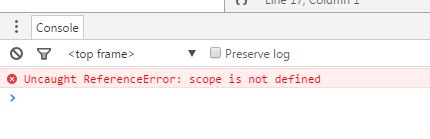 我们可以这个作用链可以这样表示:查找 scope->window(全局对象)很显然后面是有定义scope的。但是并没有做赋值操作,后面才做赋值操作,所以此时值为undefined.
