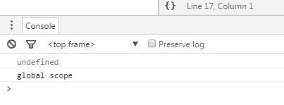 <script> "use strict"; scope; console.log(scope); var scope = "global scope"; console.log(scope); </script>
