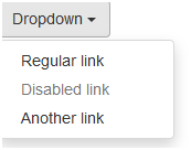 <div class="dropdown"> <button class="btn btn-default dropdown-toggle" type="button" id="dropdownMenu1" data-toggle="dropdown"> Dropdown <span class="caret"></span> </button> <ul class="dropdown-menu" role="menu" aria-labelledby="dropdownMenu1"> <li role="presentation"><a role="menuitem" tabindex="-1" href="#">Regular link</a></li> <li role="presentation" class="disabled"><a role="menuitem" tabindex="-1" href="#">Disabled link</a></li> <li role="presentation"><a role="menuitem" tabindex="-1" href="#">Another link</a></li> </ul> </div>