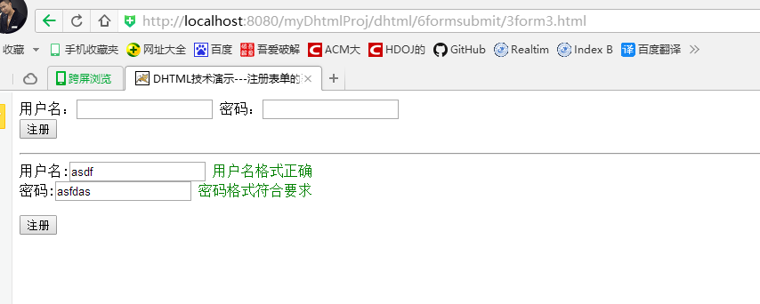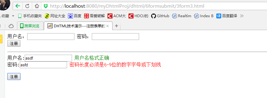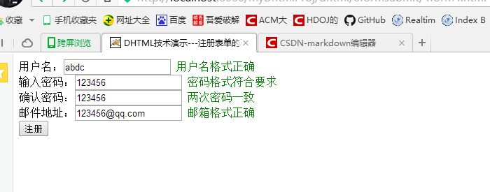 <title>DHTML技术演示---注册表单的验证且控制提交--前端校验--最终版本</title>