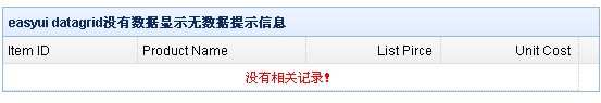 下面给大家介绍 jQuery EasyUI datagrid 无记录时,增加"暂无数据"提示