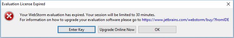 开发工具采用WebStorm,没破解,使用了过期策略:安装之后不着急打开程序,先设置系统日期为未来的某个日期,比如2020年。然后再打开程序,试用。然后再改回来系统日期。虽然每次打开WebStorm都会提示:
