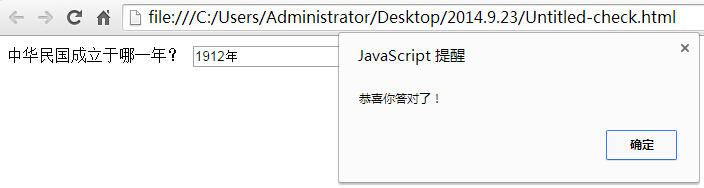 alert("恭喜你答对了!");
