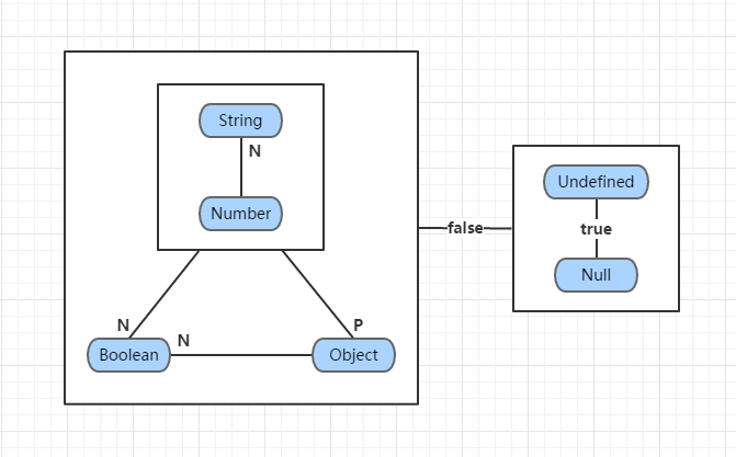 在图1中,标有N或P的线表示,当它连接的两种类型的数据做==运算时,标有N或P的那一边的操作数要先执行ToNumber或ToPrimitive变换。