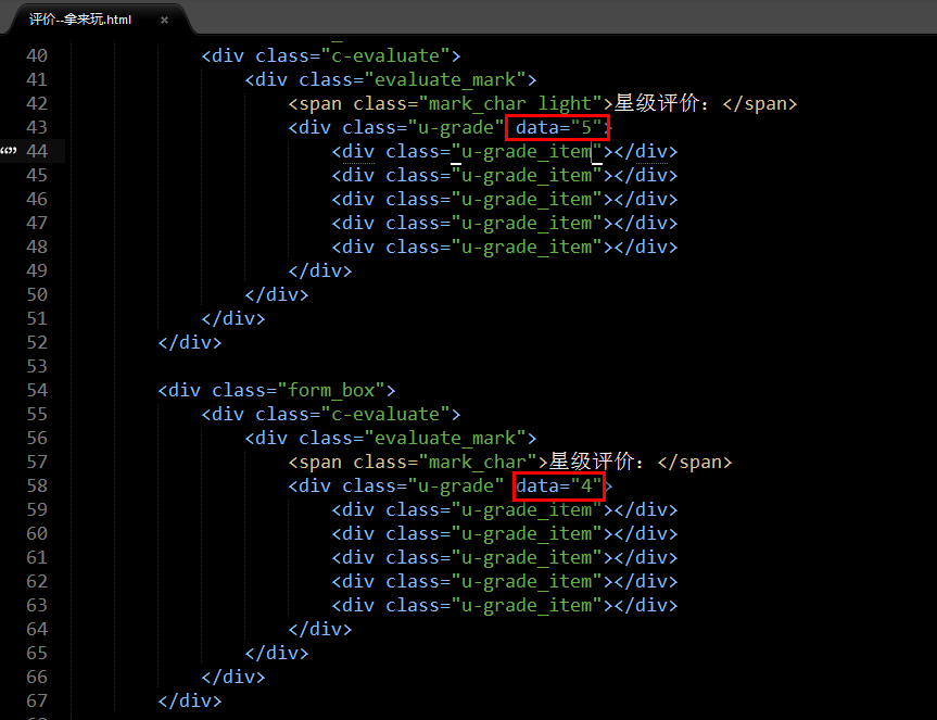 找到它之后把它所有的light移除掉(light是css中点亮星星的class),而后把u-grada_item进行遍历,star已经取得了data值,根据i<star进行判断