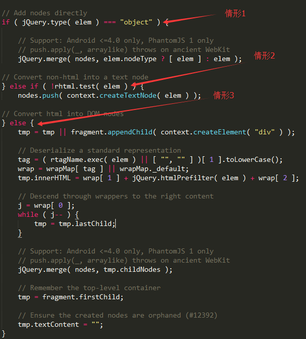 通过第一个参数 elems 构建 nodes ,将 elems 内元素转成 DOM 元素存放于数组 nodes 中