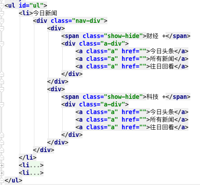 第一步:用什么来实现菜单?HTML代码设计如下,遵循JS代码和HTML代码分离的原则!这里你看不到一句JS代码