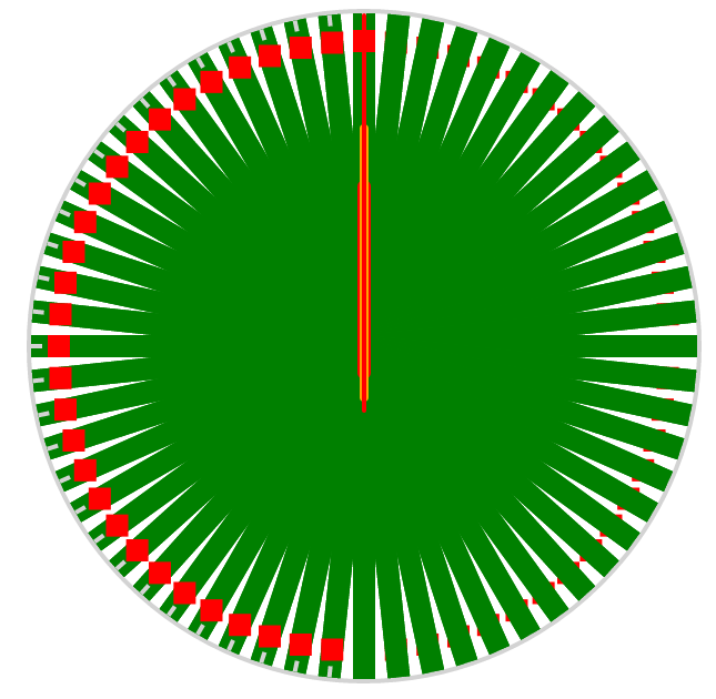 用js在三角函数布置表盘的过程中有遇见到这种情况:是在表盘的刻度处,利用三角函数计算具体的值时不能得到整数,需要向上或者向下取整,这样无形中就会存在些许偏差,而且这样的偏差难利用样式来调整到位,即使最终效果都可以实现,但是细微处的缝隙和角度的偏差都会影响整体的视觉体验,作为一名程序开发人员,这样的视觉体验很难让别人认可,放弃。