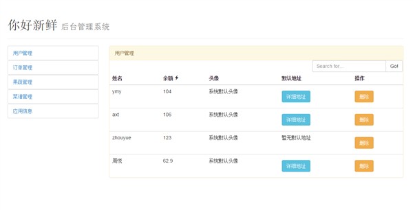 user.html (显示用户的信息,当地址不为空时,显示详细地址按钮,并点击按钮时,调用controller中的clickToAddress函数)