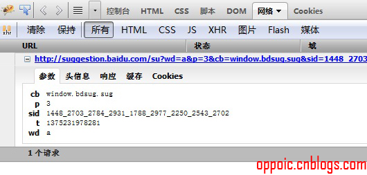 请求参数:wd明显是要搜索的关键字;cb是请求回来的处理函数,名字可以随便给;t是时间戳,防止缓存的;p不知道什么意思,每次请求都给3就可以了;sid也不知道什么意思,不要也可以请求,如果想要也可以带上,值就是上面截图的值。