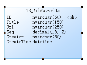 了解了上面关于系统页面的收藏夹功能界面效果后,我们需要了解它的具体实现过程,首先我们需要设计一个表用来存储收藏夹对应的信息,页面标题、页面地址、排序等信息。