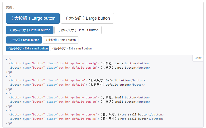 另外,按钮的大小也有分类:
