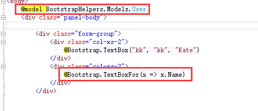这样做的意义就是为了在cshtml页面里面可以使用@Bootstrap.TextBoxFor(x => x.Name)这种写法。这个后面介绍,这里先埋个伏笔。