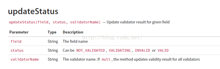 updateStatus方法的作用是更新给定字段的校验状态,官方介绍如下: