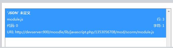今天在使用Moodle的时候, 突然发现在IE下进入课件的时候提示"JSON 未定义"错误信息.