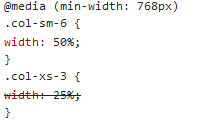 col-xs-*永远都是单行是因为,他的width和float都不定义在@media里面,不管屏幕怎么变,他都有自己的宽度和浮动。