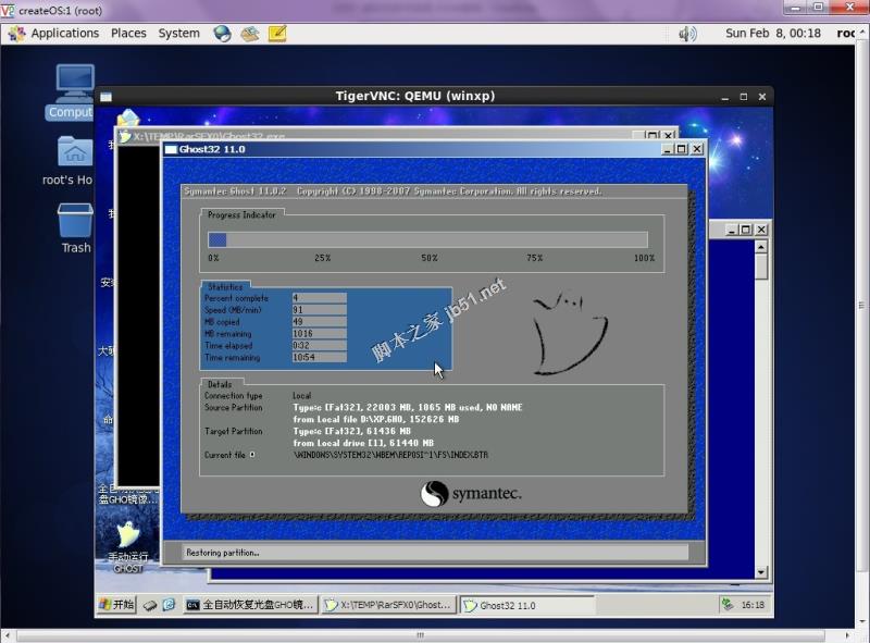 选择全自动恢复GHO镜像到C盘,开始安装: