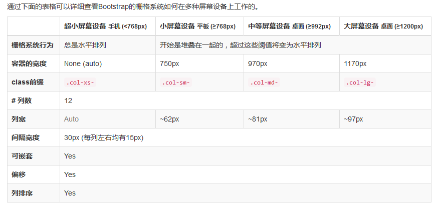 (5)栅格系统是通过指定1-12的值来设定范围的。对于col的规格,开发者指定了4个不同的屏幕