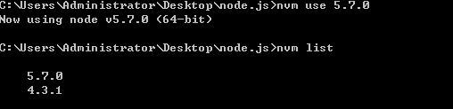 可以看到当前安装的有4.3.1版本,那么我么使用 nvm use 4.3.1就可以指定当前使用的node版本为4.3.1,4.3.2后边也会出现(当前使用的标志),当然,我们可以再去下载一个node版本,例如: