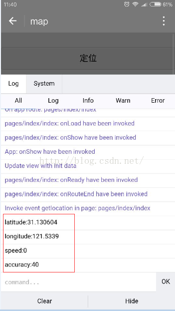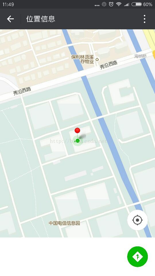 今天做到地图定位的模块.模拟器肯定是获取不到位置的.下面为真机测试结果.
