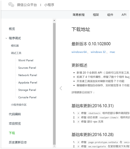 工具获取地址:https://mp.weixin.qq.com/debug/wxadoc/dev/devtools/devtools.html?t=20161107