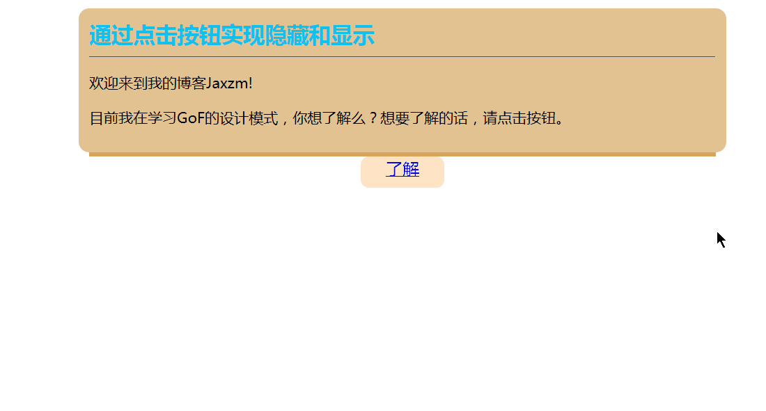 还有一种方式就是通过jQuery方法来实现,通过切换实现隐藏与显示;效果如下: