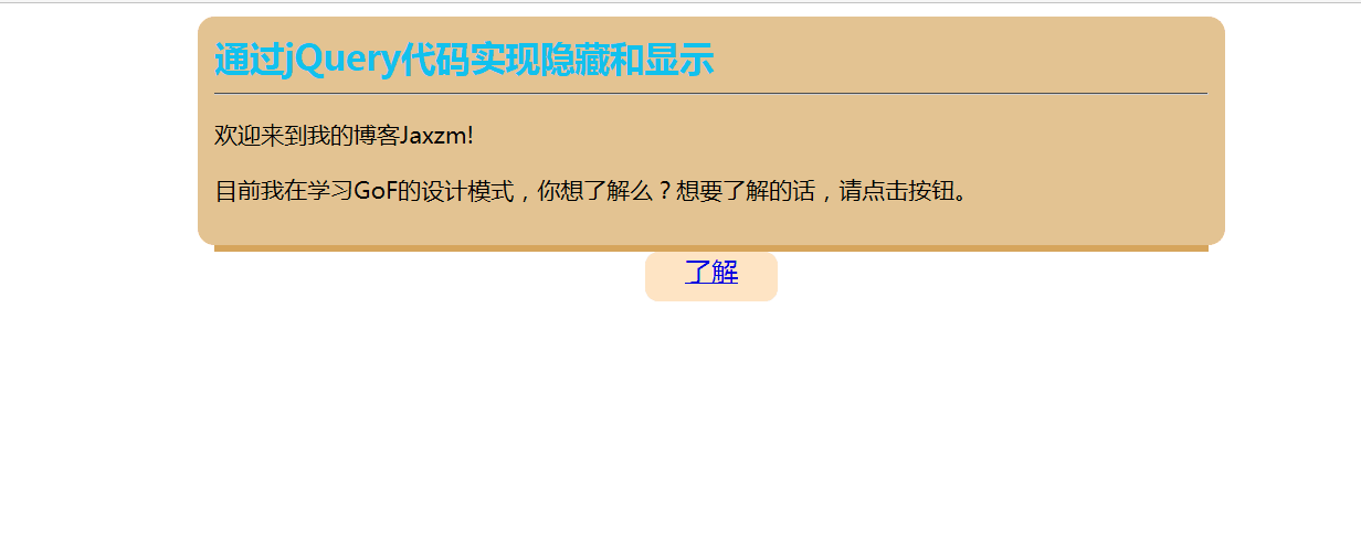 <h2>通过jQuery代码实现隐藏和显示</h2>