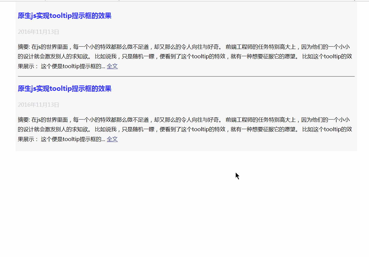 比如这个tooltip的效果展示: 这个便是tooltip提示框的... <a onclick="showdiv(this);" href="#">全文</a>