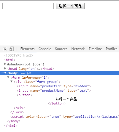 在选择商品之后会在productName里面展示商品名称给用户看,而在productId这个隐藏域里面放一个商品的ID。