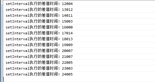 console.log("setInterval执行的差值时间:"+(time2-time1));