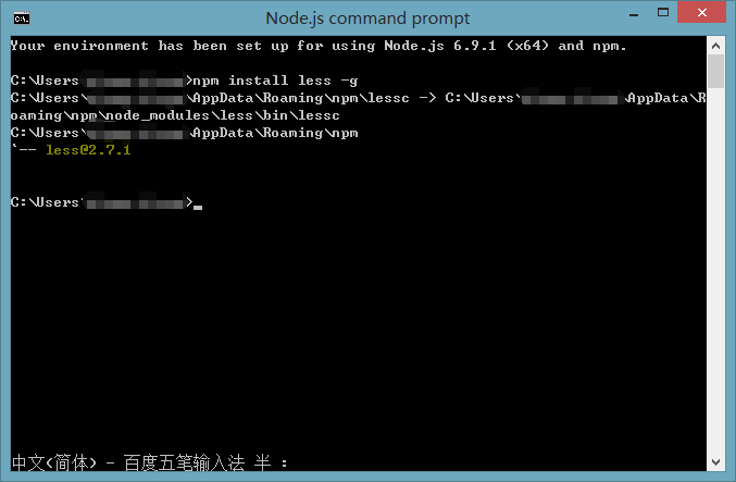1.使用 nodejs 命令安装 less。