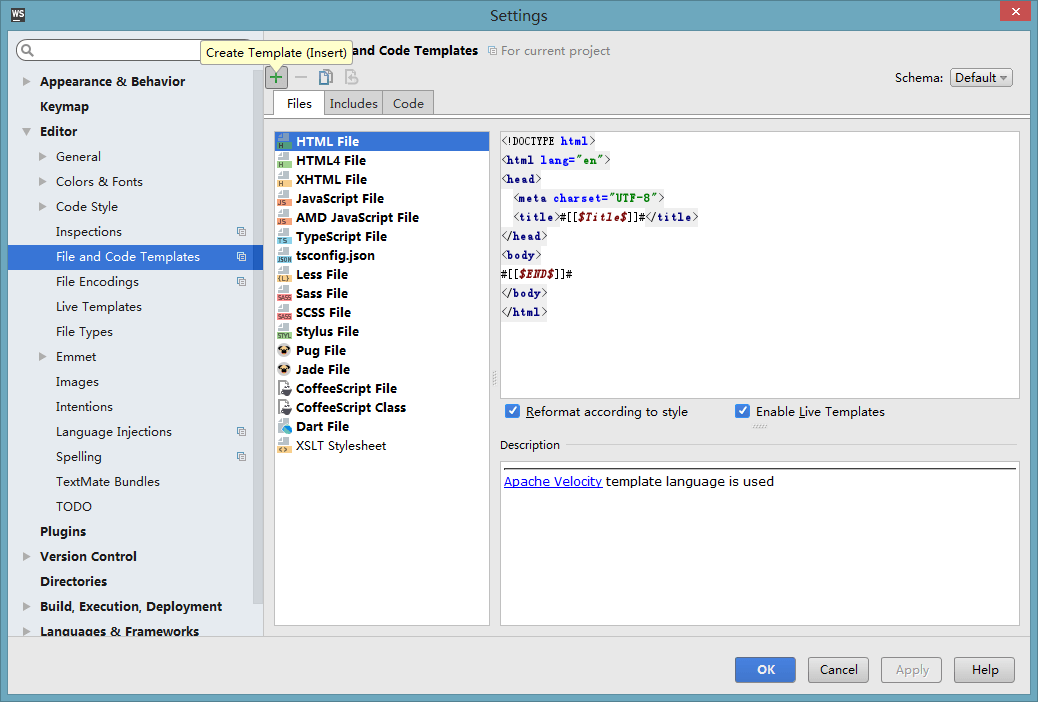1).打开webstrom的 设置,找到Editor下的File anb Code Templates. 如图: