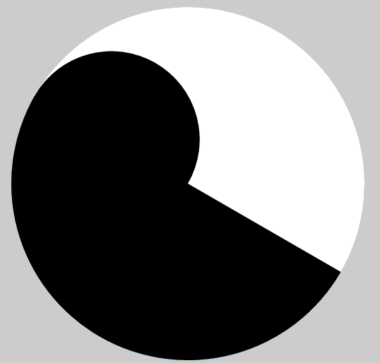 3.然后画4个圆,以基准转盘为父元素,按照下面黑色圆一样的思路再画另外一边白色的圆,最后再在两个中等的圆上画两个小圆。