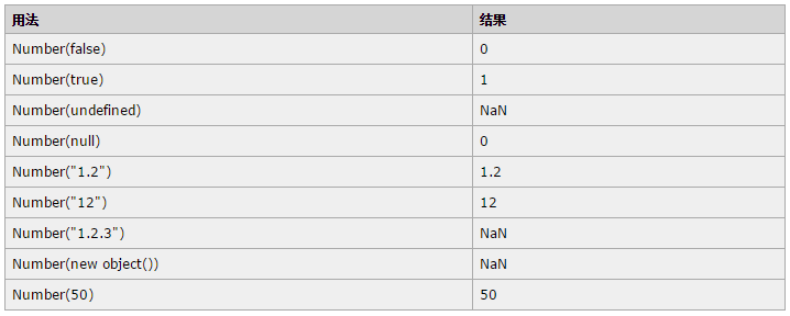 Number() 函数的强制类型转换与 parseInt() 和 parseFloat() 方法的处理方式相似,只是它转换的是整个值,而不是部分值。
